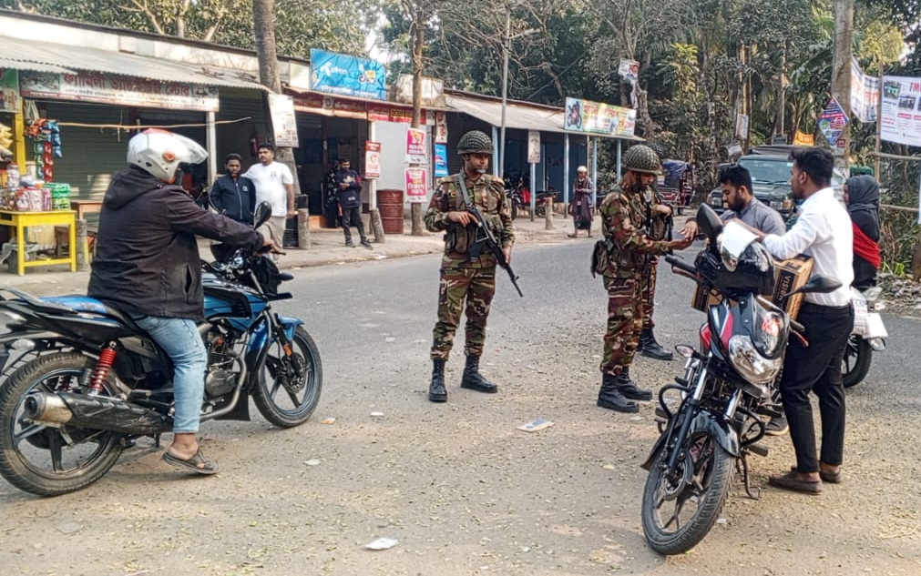 চরভদ্রাসনে সেনাবাহিনী-পুলিশের যৌথ চেকপোস্ট, ফিরছে ভোটের আস্থা