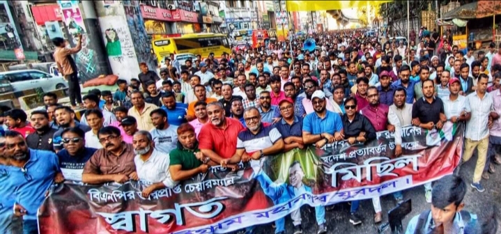তারেক রহমানের স্বদেশ প্রত্যাবর্তন উপলক্ষে নগর যুবদলের উদ্যেগে স্বাগত মিছিল।